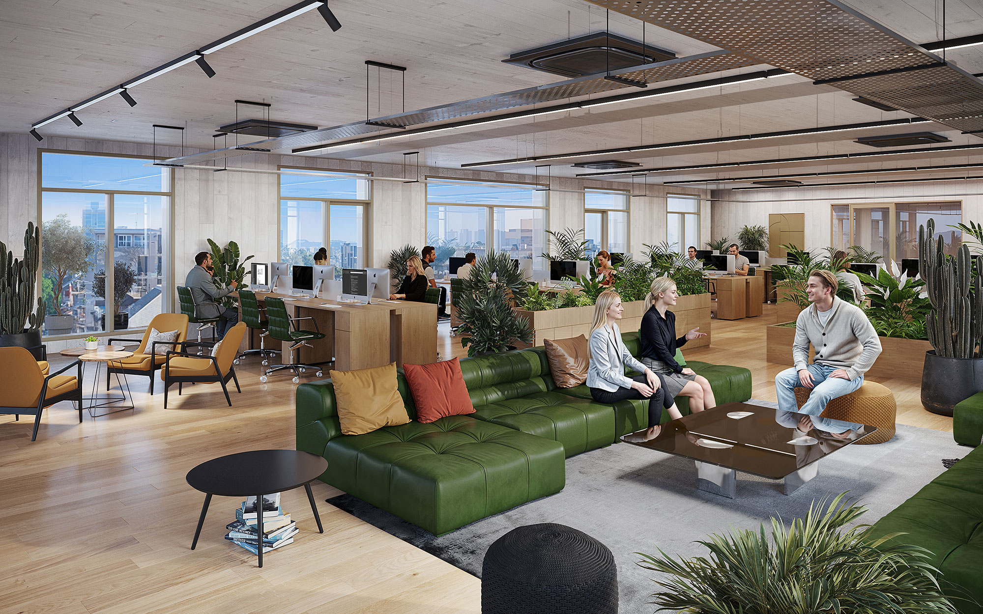 The 4th floor offers bright, flexible workspace and a roof terrace with stunning views.